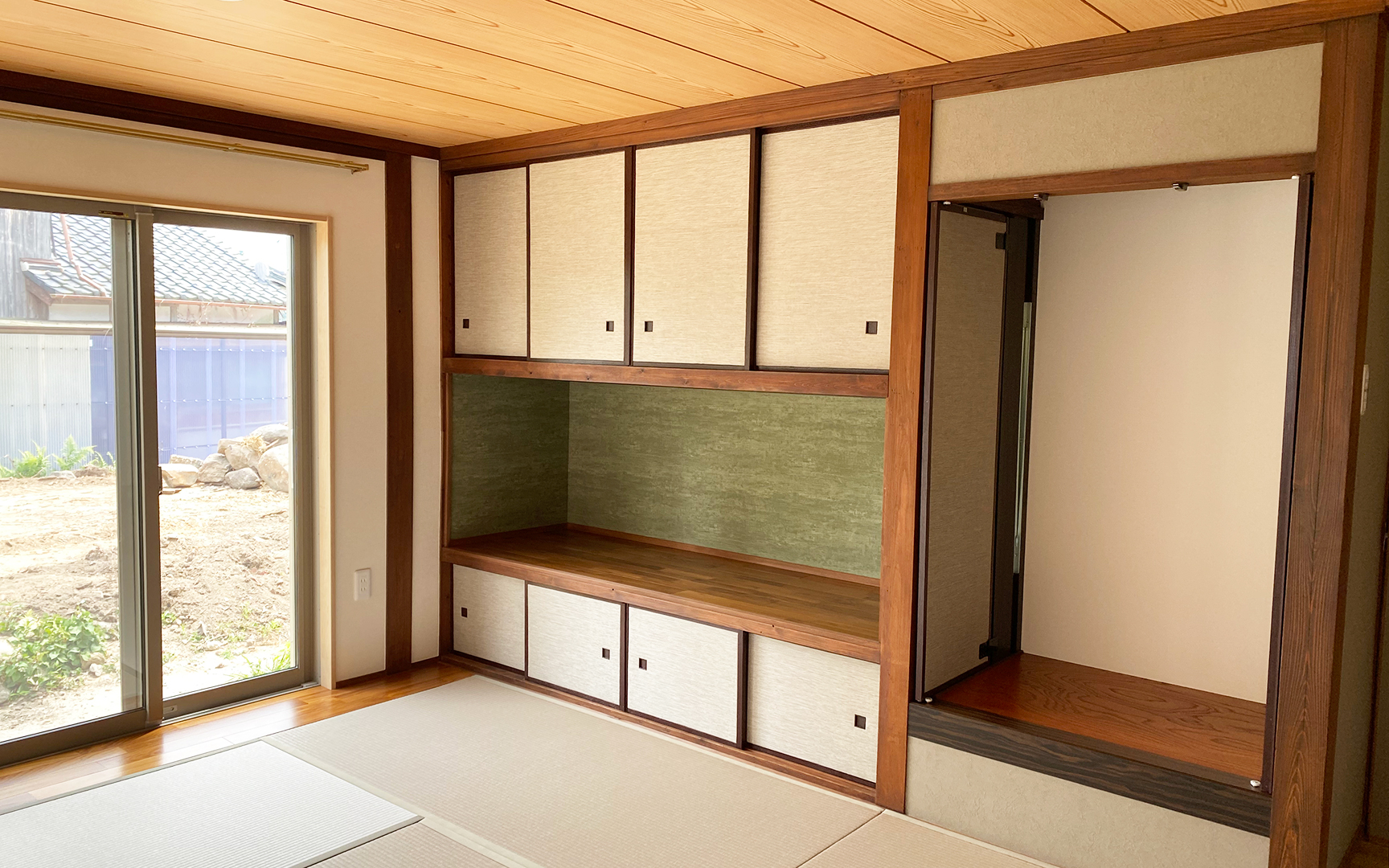 和室の改装工事では、年代とともに傷みが目立ち、使いにくくなっていた和室を、畳の交換、襖の修繕、床の間のリフォームを行うことで、和の風情を保ちながらも、使いやすい空間へと改装しました。